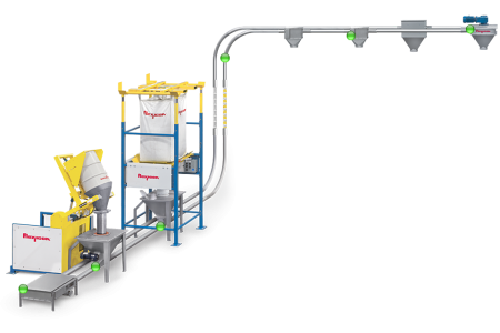- Převádí materiál z jednoho nebo více vstupů do jednoho nebo více vývodů (ideální pro balicí linky)